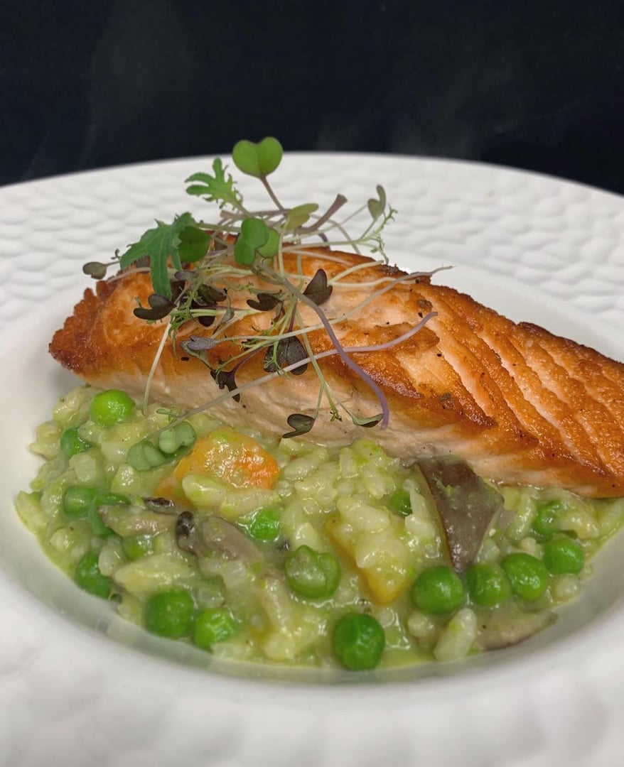 pan seared & roasted chicken breast | confit portobello mushrooms | spinach | roasted garlic white wine cream sauce